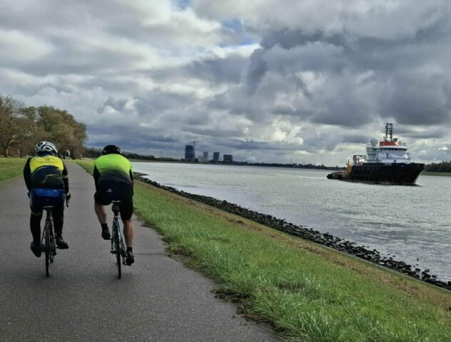 We vervolgen onze route langs de Nieuwe Waterweg richting Maassluis. Albert haakt deze keer niet af en rijdt mee tot Schiedam en het mooie Vlaardingen. Samen met Leo en Albert word ik netjes thuisgebracht — klasse mannen!