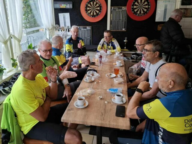 Via Ockenburg bereiken we al snel ons vaste stekje: Loesje in Kijkduin. Daar worden we zoals altijd hartelijk ontvangen. De koffie is top, de sfeer nog beter — het is altijd berengezellig met deze club.