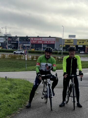 Dinsdag = fietsdag. Dat is geen mening, dat is wet bij Toerclub Rijnmond. Dus ondanks de nattestraten en een buienradar die ons belooft dat het droog blijft, stappen we op. Op naar Hermes, ons vertrouwde clubhonk.