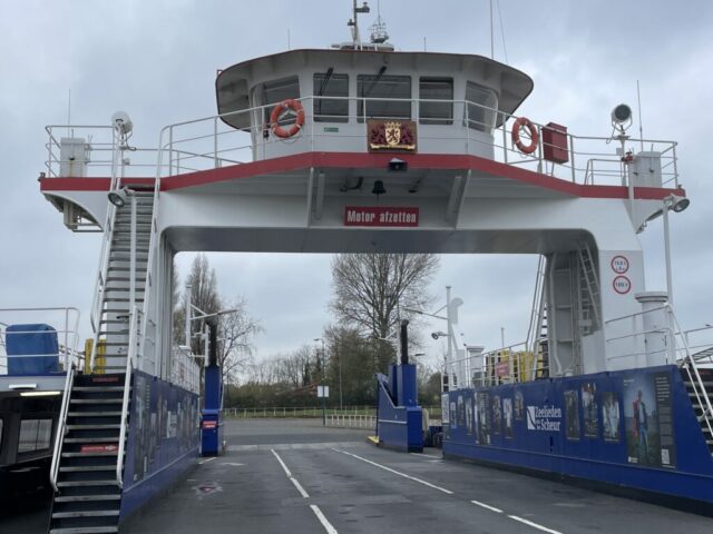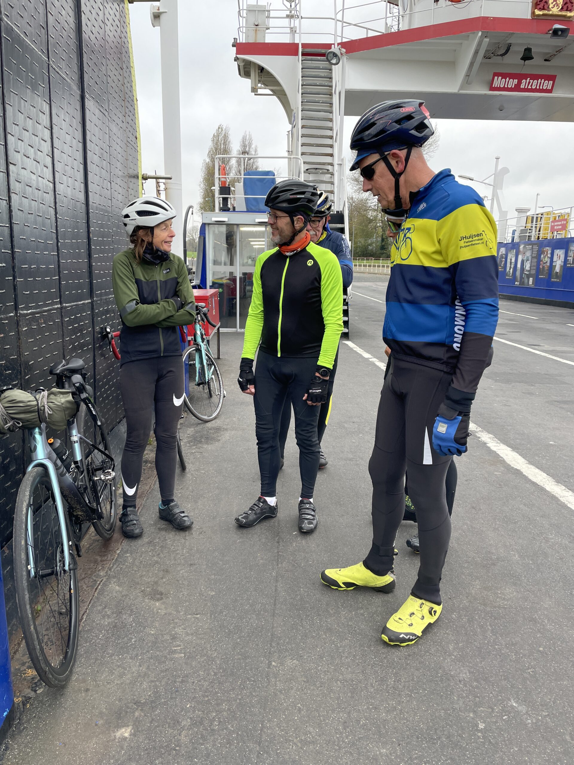 Na de gezellige break volgt het tactisch overleg: terug via de tunnel of de pont van Rozenburg? Voor Bert is de pont ideaal — hij woont daar, dus dat telt als VIP-voordeel.