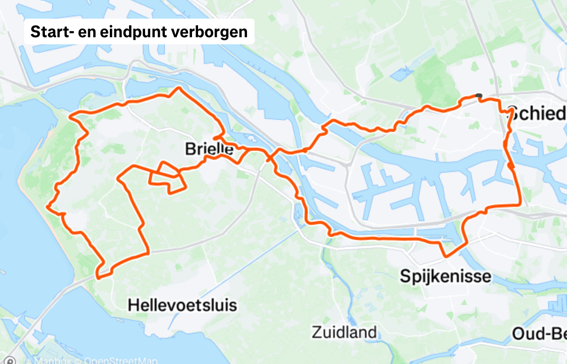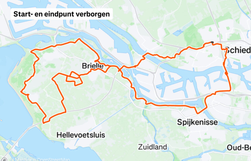 Marcel neemt het stuur over en zet het tempo op “sportstand”. Frank en Gerrit kiezen hun eigen route (waarschijnlijk met minder bruggen). Wij slingeren door de polders van Voorne-Putten, met hier en daar een extra lusje — want volgens Marcel moeten we “aan onze kilometertjes komen”. Niemand protesteert. Het weer is top.