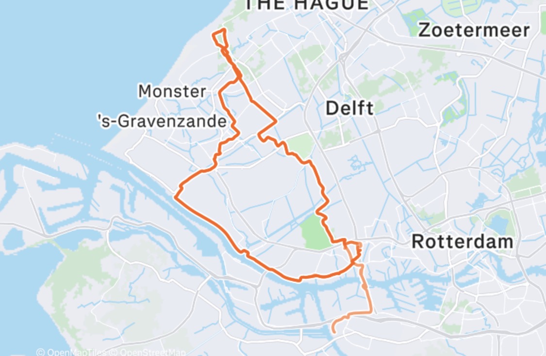 Opgewarmd en opgefrist begon de terugweg. Leo en Gerrit hadden alles keurig voorgereden — waarvoor nog bedankt. Volgens afspraak werd de kortste route naar huis gekozen, via Kwintsheul. Al stelde ik voor om toch nog een klein extra lusje te maken, en zo ging het via Schipluiden en de Kapel richting huis. Frank zocht zijn eigen weg naar Hoogvliet.