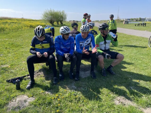 Even later werd er flink doorgereden. Bij Klein Delfgauw kreeg ik last van een ritmestoornis en moest stoppen. Leo en Gerrit bleven bij me tot het voorbij was — heren, bedankt daarvoor.
