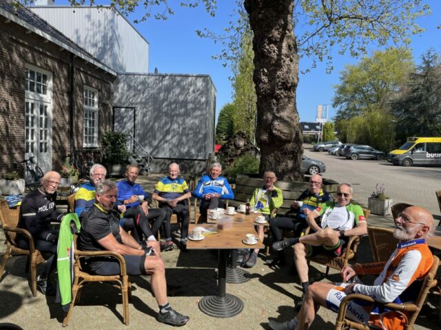 Na de break nam Leo de leiding, en ik mocht af en toe ook een stukje route bepalen. We reden via Zoeterwoude en Stompwijk en hielden bij het Westerpark de bekende koekiestop.