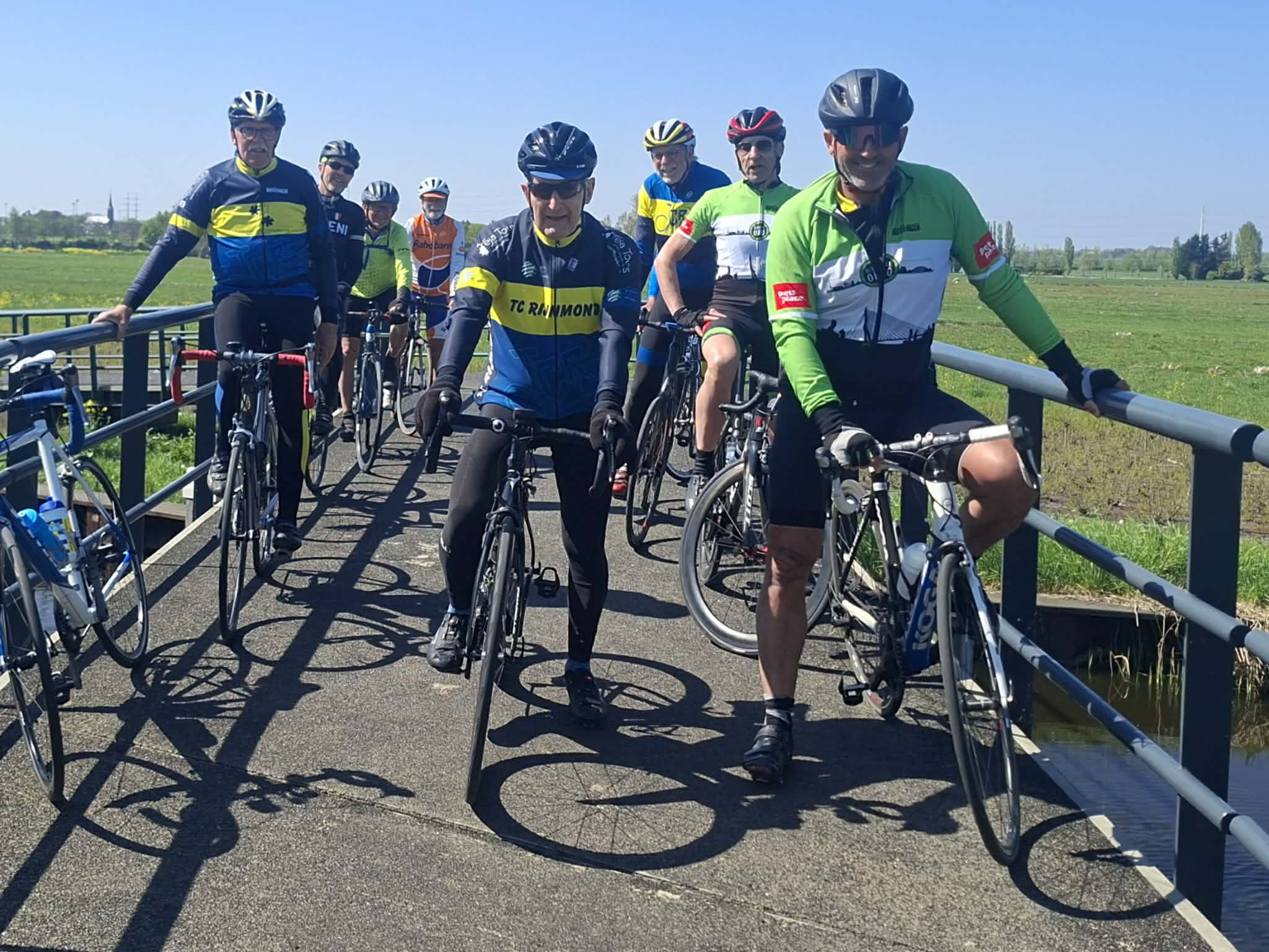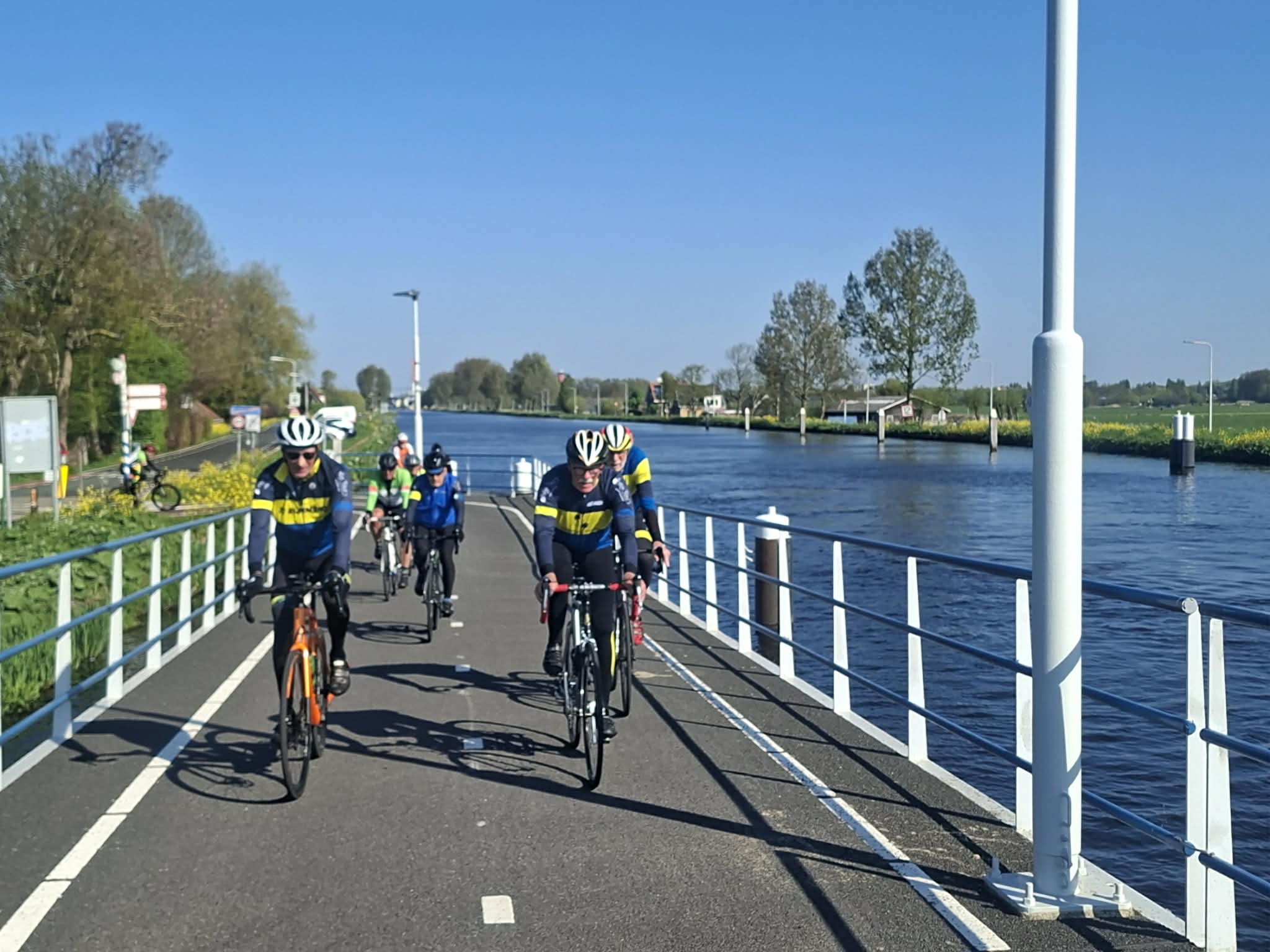 Daarna ontstond wat verwarring: de bedoeling was om via de Balijbrug het aardige klimmetje mee te pakken. Alleen Marcel en Bert (dacht ik) gingen die kant op; de rest reed anders. Bij de blauwe brug in het Balijbos verzamelden we weer tot we compleet waren.