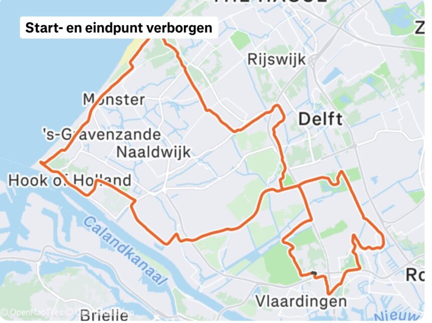Daarna rijden we nog een stukje samen richting de Nieuwe Waterweg. Bij de Steendijkpolder slaan Leo en ik af en volgen we de Gaag. Nu wel met wind tegen, maar achter het wieltje van Leo is het goed te doen. Via Schipluiden en het Abtswoudse Bos rijden we langs de Schie naar de Zweth. En natuurlijk — Leo zou Leo niet zijn — pakken we nog een extra lusje mee. Na ruim 85 kilometer zijn we weer thuis.