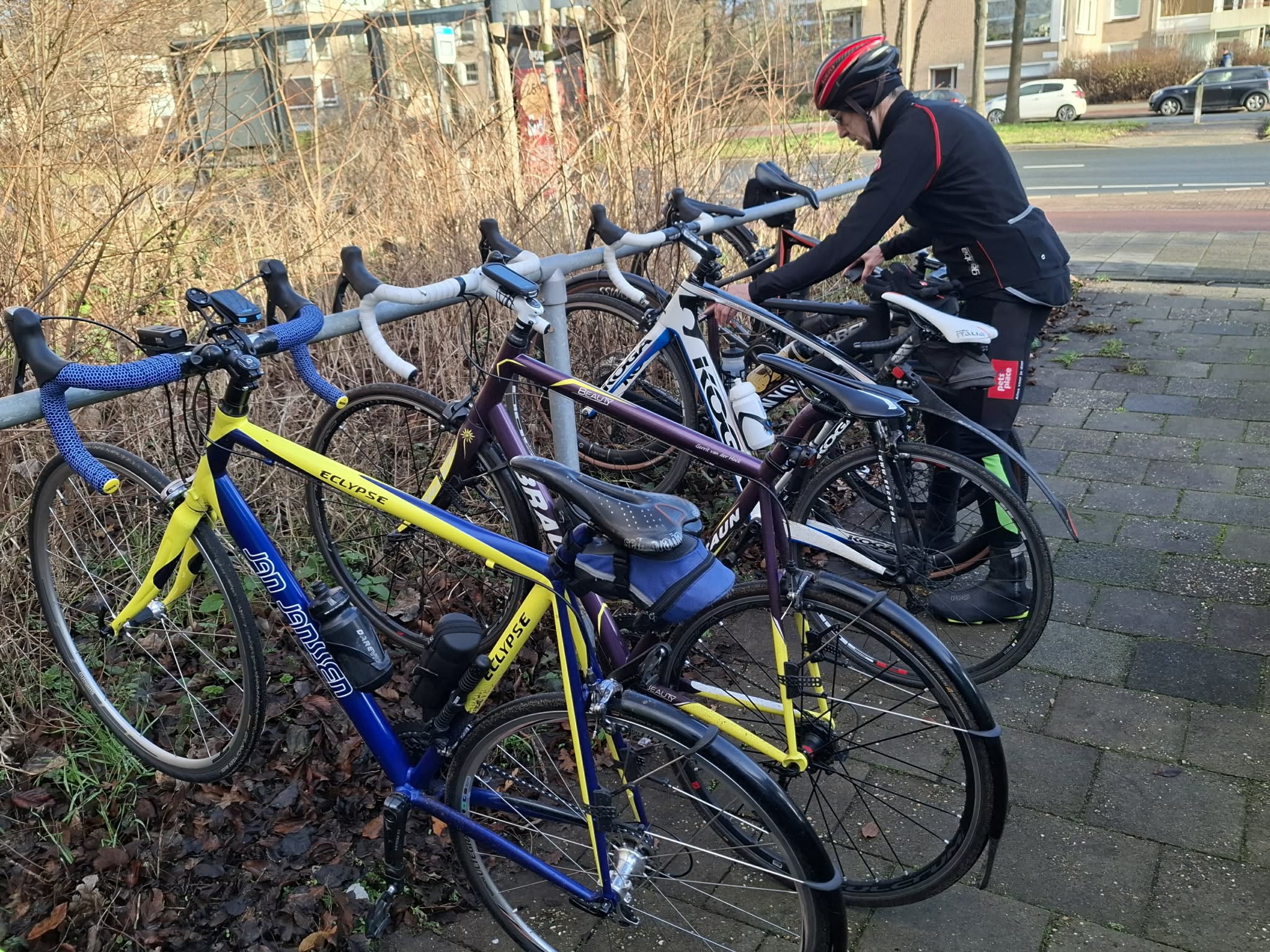Oudejaarsdag. Ik was eigenlijk van plan om een solo rondje te maken, na de omstandigheden van de vorige rit. Dus ik stuurde een appje dat ik vandaag niet naar de club zou gaan. Nog geen minuut later reageerde Leo: “Ga je wel fietsen dan?”