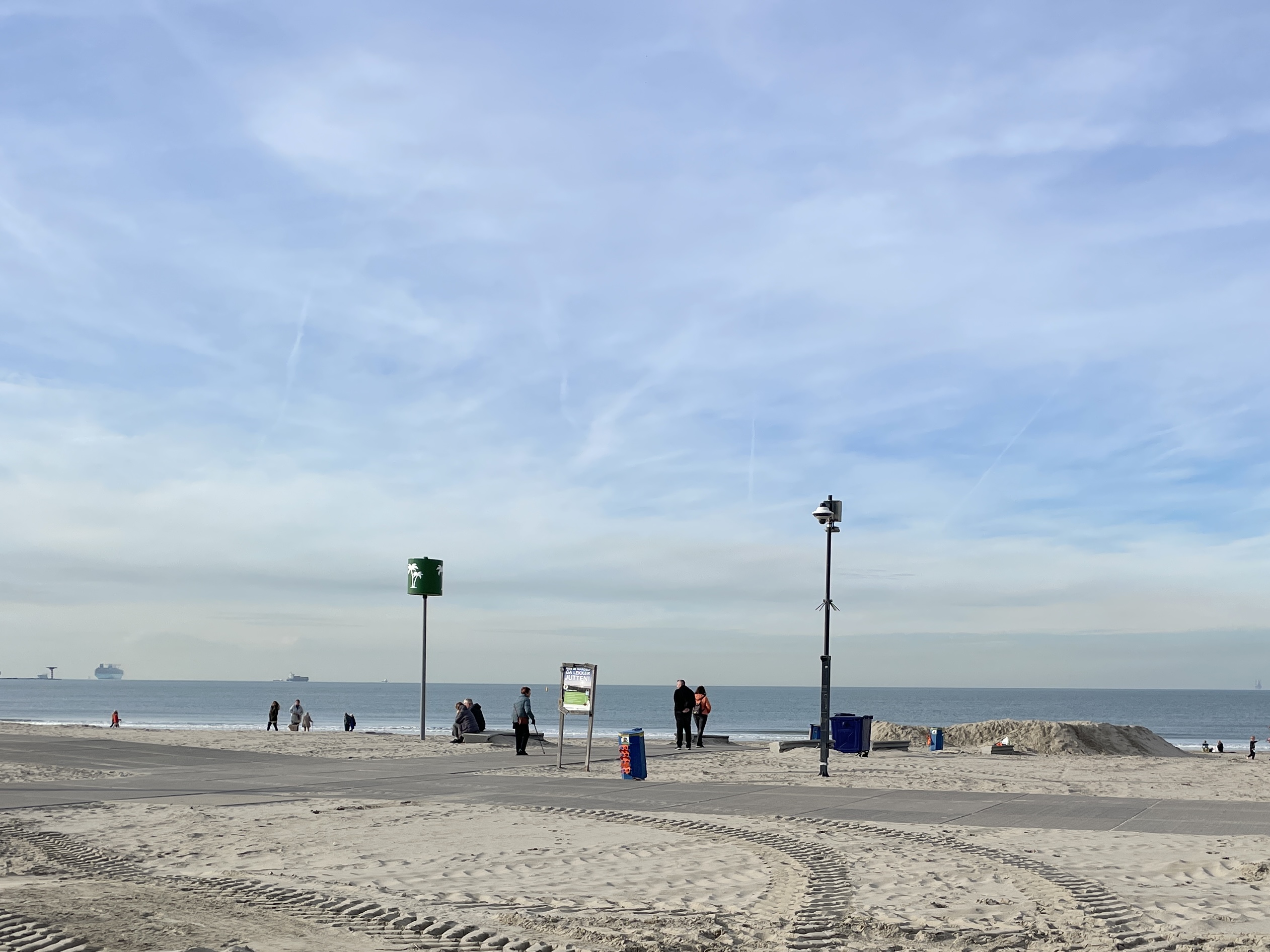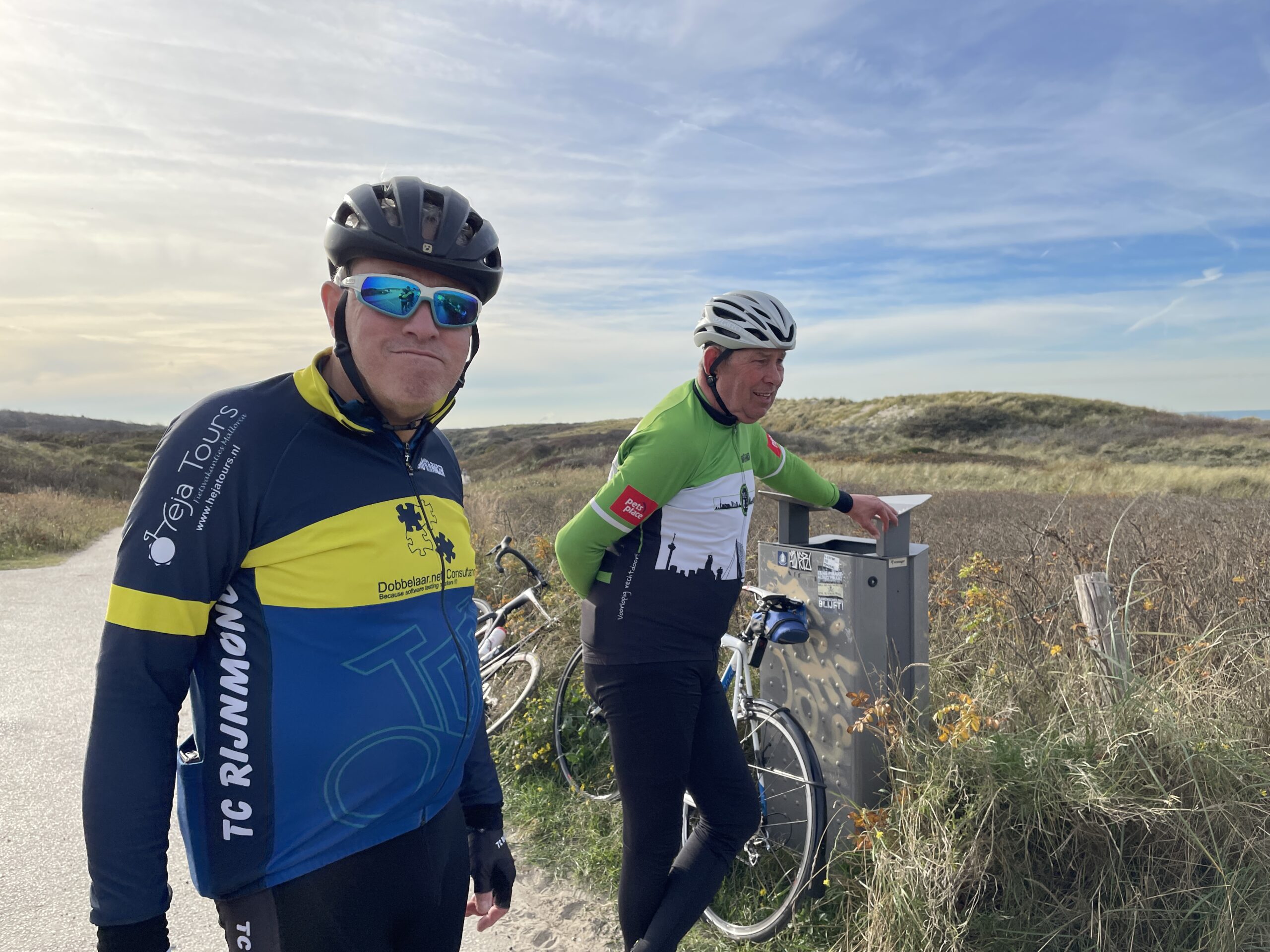 Via Scheveningen hielden we nog een koekiestop met uitzicht over de zee, waar de horizon zich van haar mooiste kant liet zien. In Kijkduin werd er overlegd: sommigen kozen voor de kortere route huiswaarts, wij gingen door naar Hoek van Holland voor ons traditionele strandmoment.