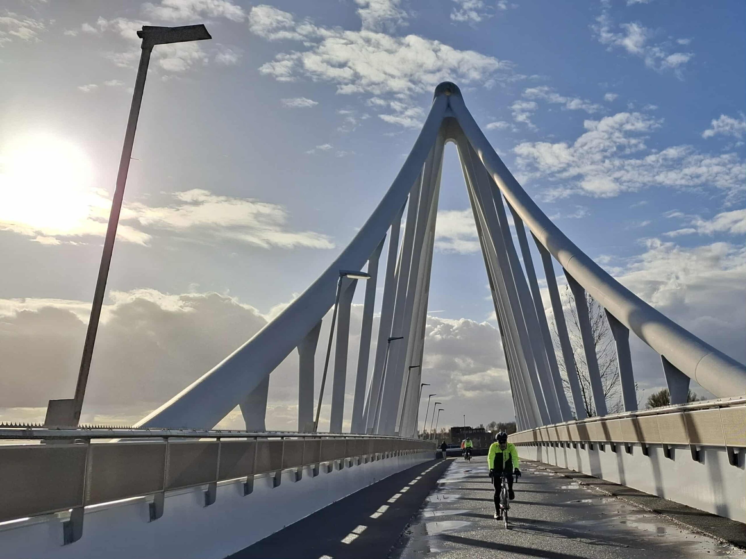 Het tempo lag vanaf het begin hoog. Via Windas en de Zweth reden we langs Oude Leede, Berkel en Rodenrijs richting het Balijbos. Op de Blauwe Brug hielden we een koekiestop en werd natuurlijk een foto gemaakt. Daarna volgde de klim naar de Balijbrug over de A12, via Roeleveen langs het ADO-stadion.
