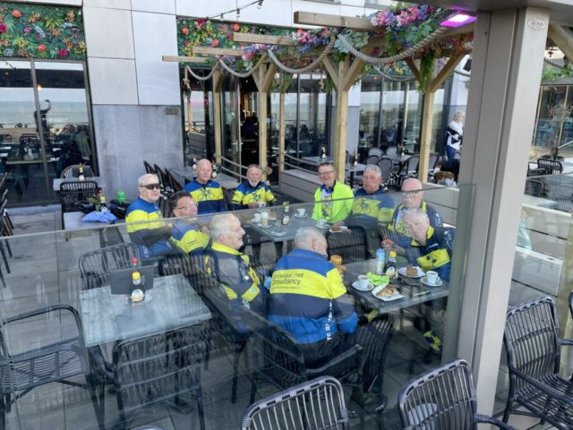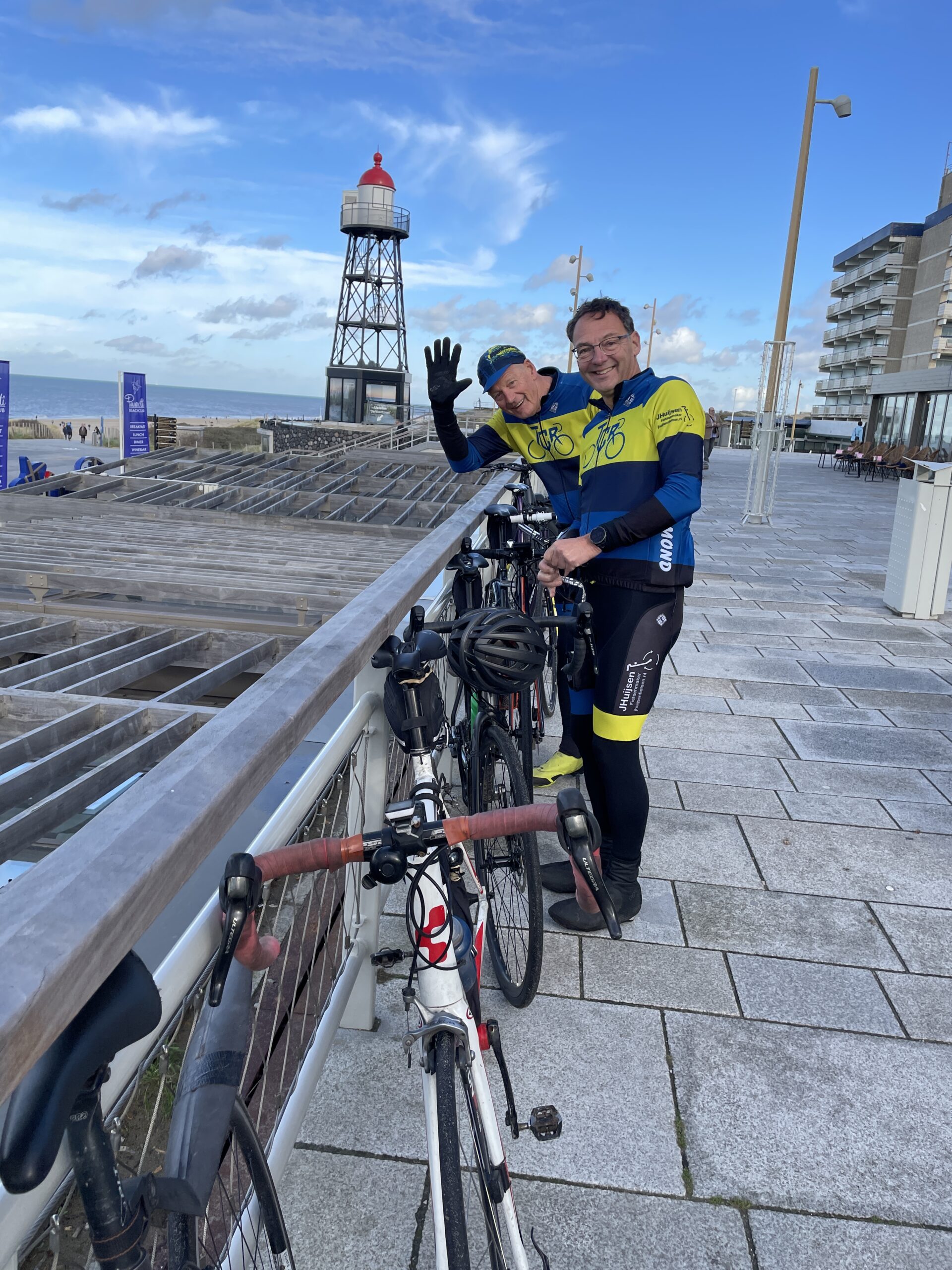 We verzamelen met z’n tienen: Frank B, Olaf dH, Alex L, Rob vT, Ed S, Bert dM, Karl S, Gerrit vdH, Jan vN en ikzelf, ook weer eens van de partij. Er worden wat routes geopperd, maar het wordt Kijkduin—een prima keuze gezien de windrichting.