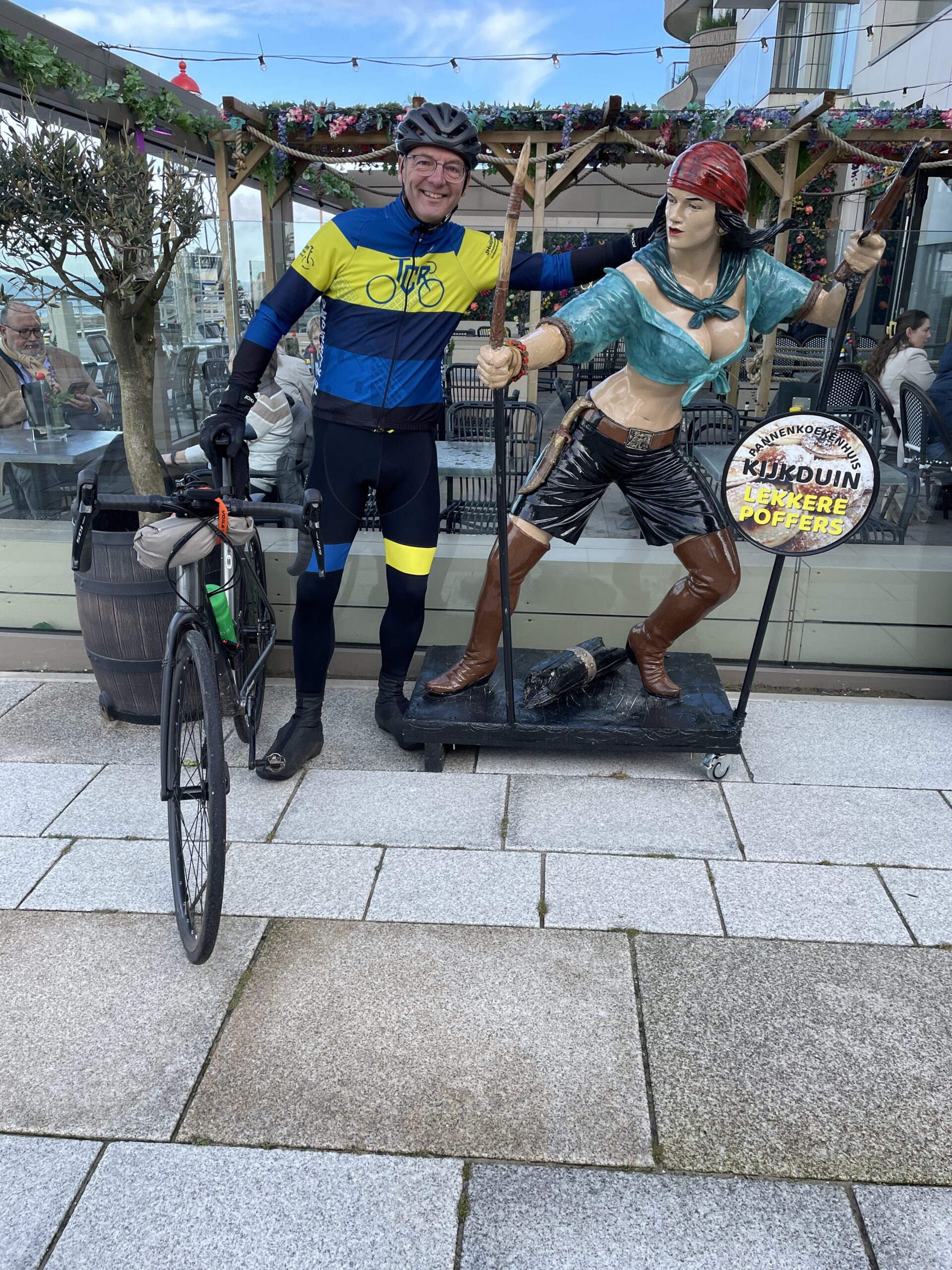 Voor Hoek van Holland buigen we af: een stuk duingebied is afgesloten, dus we kiezen voor de Hoekse Bosjes—een historisch stukje groen. Met de wind in de rug rollen we soepel richting Kijkduin.
