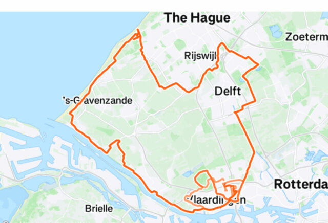 We vervolgen via Kwintsheul, langs de bekende parken, door Nootdorp, Delfgauw en het Delftse Hout. Nog een koekiestop, en dan langs de Schie. Bert zoekt zijn eigen weg naar huis, en na het Beatrixpark doen wij hetzelfde.