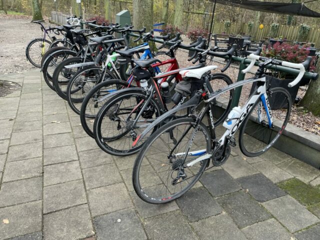 Het is zondag, dus clubfietsen voor Toerclub Rijnmond. Het is droog, maar er staat wel aardig wat wind vanuit het zuiden te blazen! Dus op tijd naar Hermes, ons clubonderkomen. We zijn met twaalf man voor een rondje: Frank B, Ed S, Bert S, Olaf dH, Alex L, Marcel R, Rob H, Gerrit vdH, Arie B, Floris vdB en ikzelf dus.