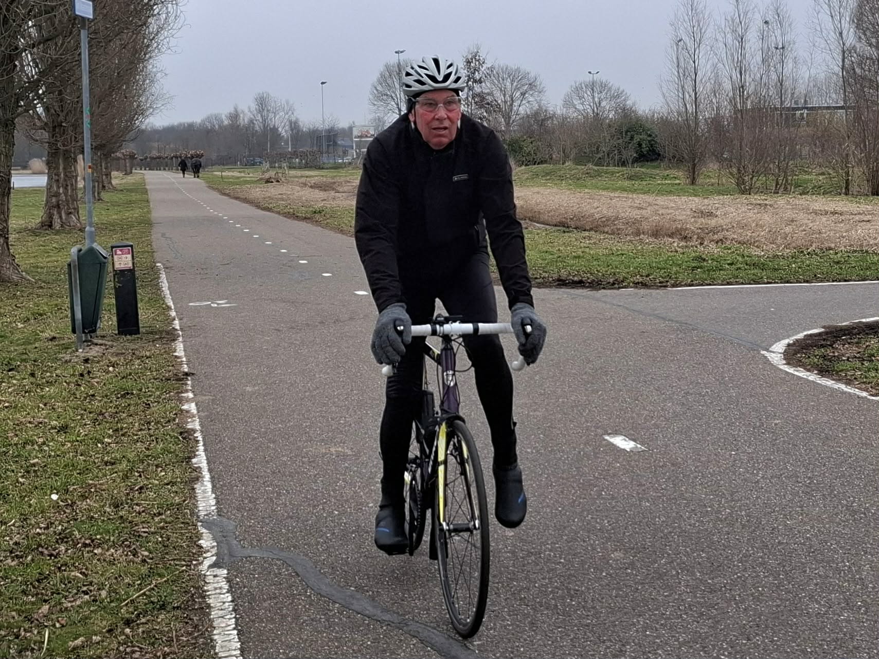 Bij Schipluiden volgt plots een koekiestop. Ron rijdt door, en even later Bert ook. Met z’n drieën draaien we nog wat extra lusjes. Leo is niet af te stoppen: door het Abtswoudse Bos, langs de Delftse Schie, en na de spoorlijn nóg een lusje. Het moet niet gekker worden. Na 80 kilometer ben ik dan ook tamelijk uitgewoond thuis.