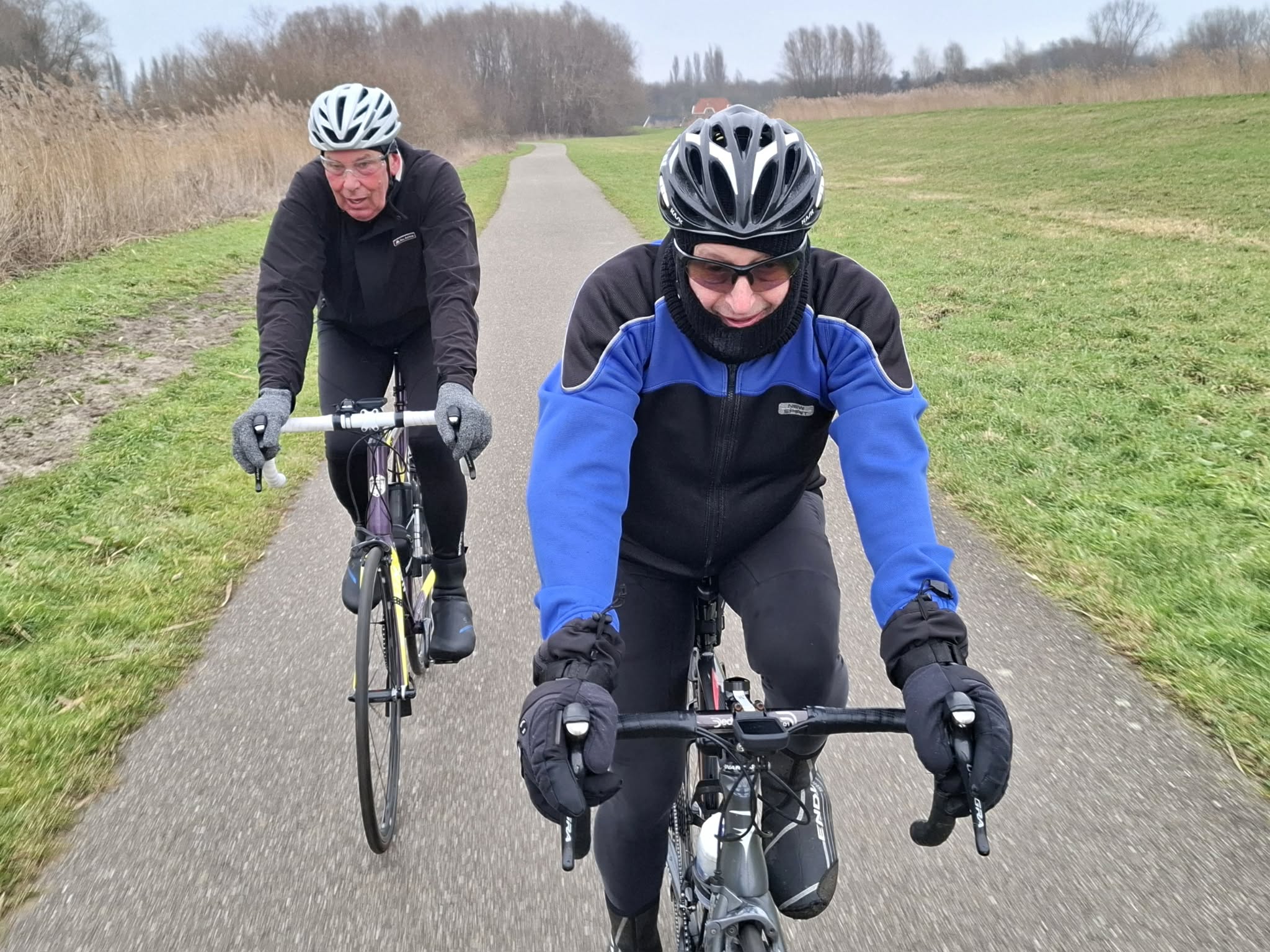 Na de break volgt de terugweg, pal tegen de wind in. Leo neemt de kop via Ockenburg naar Kwintsheul. Daarna pakt Gerrit nog een extra lusje mee, wat verrassend goed uitpakt. Om ’t Woudt heen, en vervolgens weer met Leo op kop in de straffe tegenwind. Voor mij is het aanpoten.