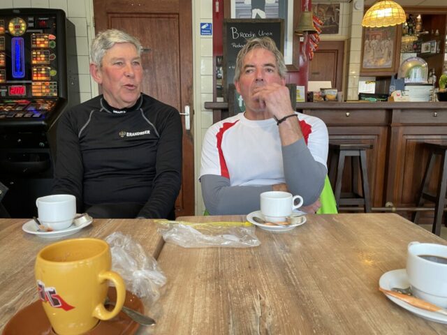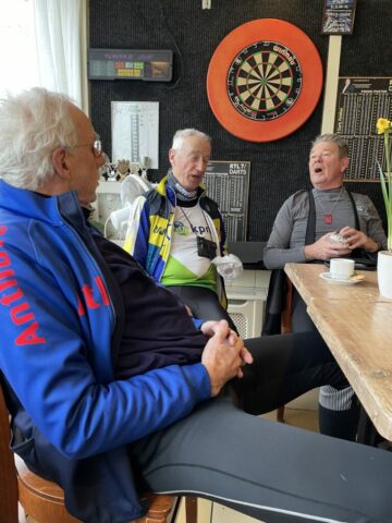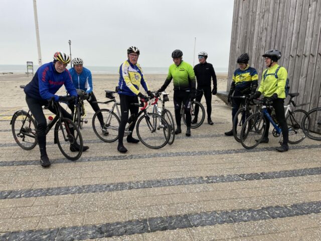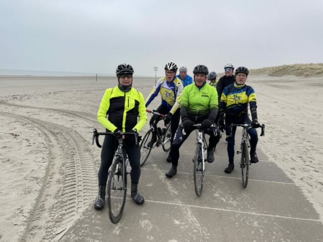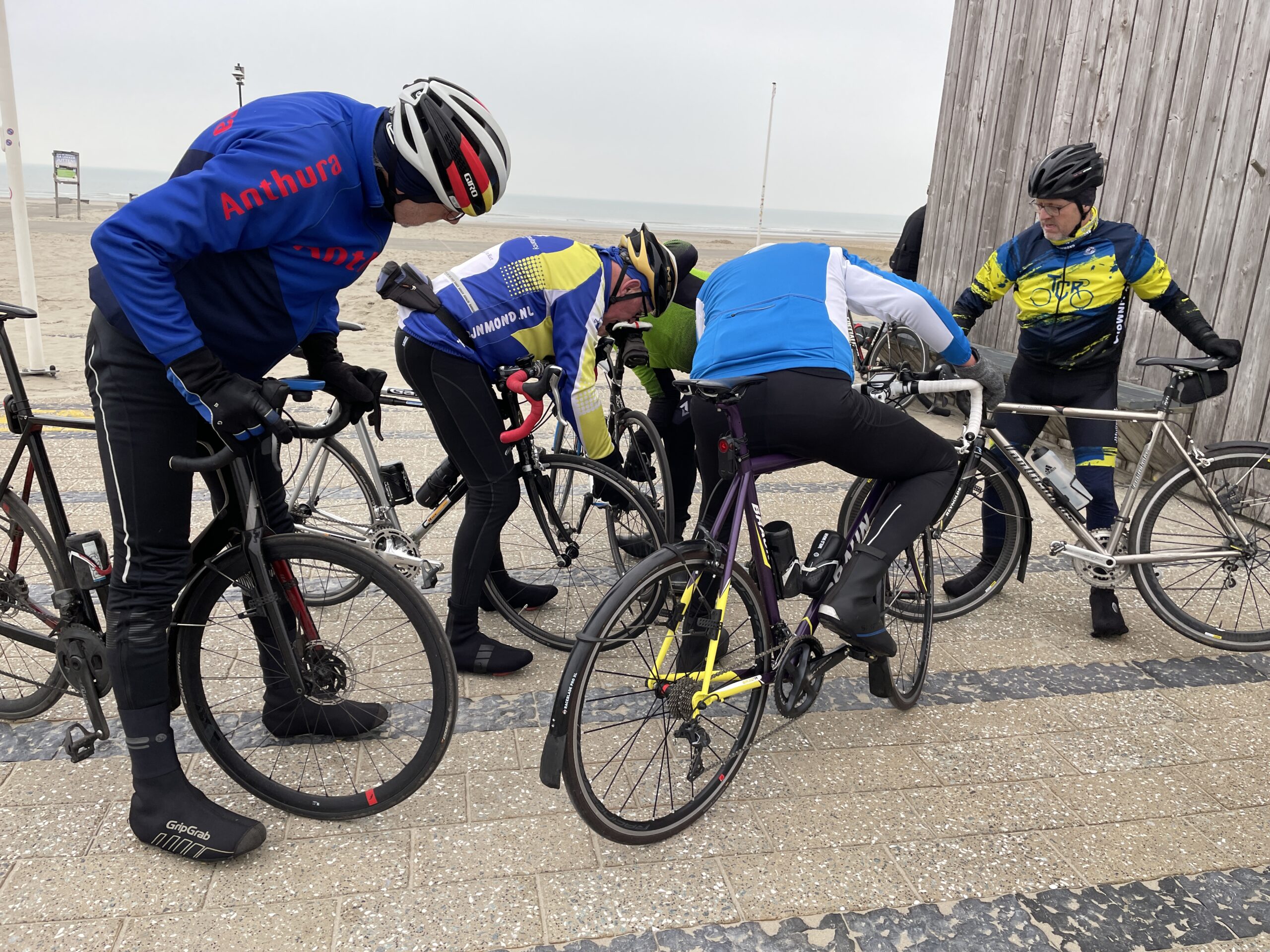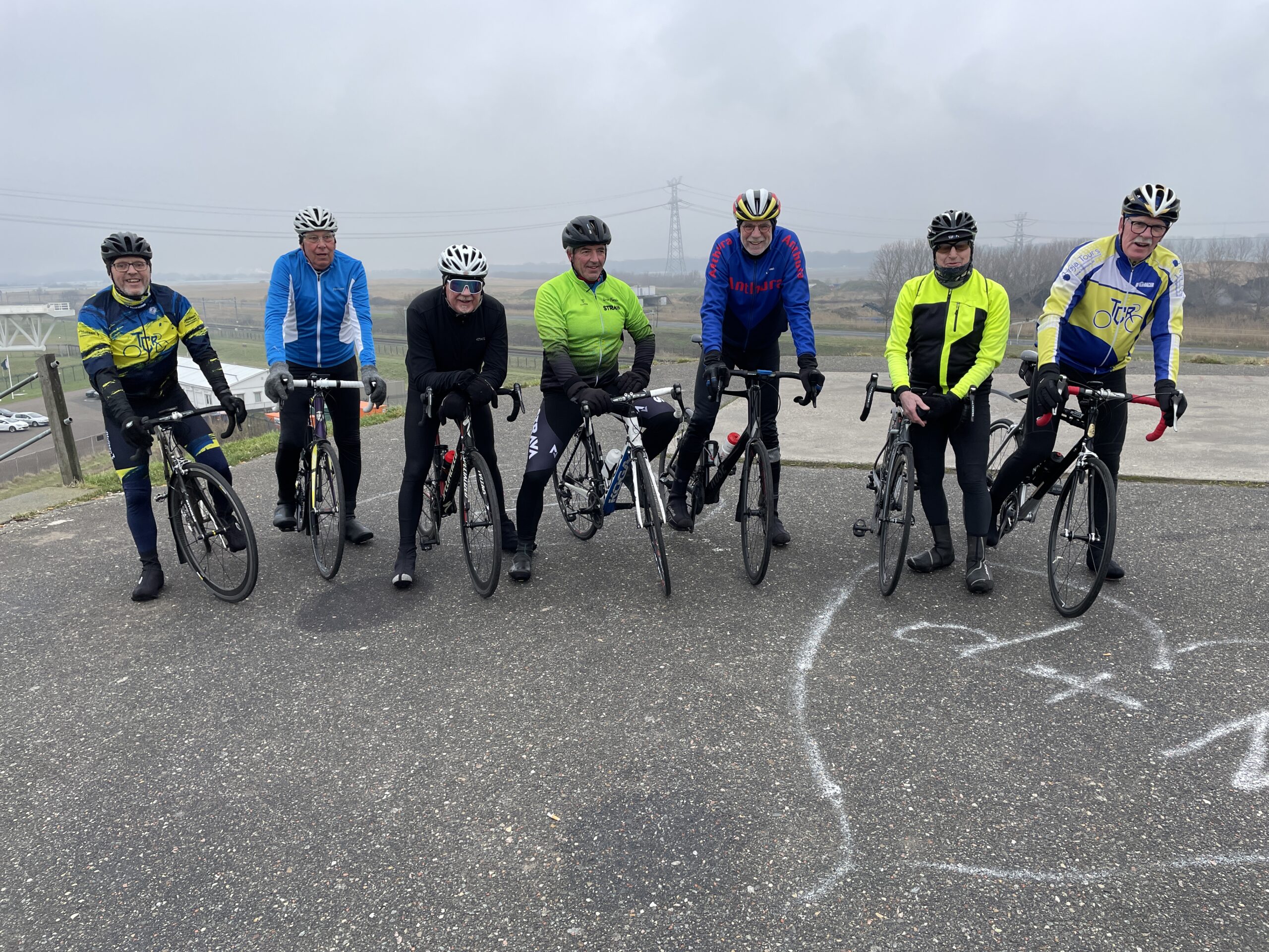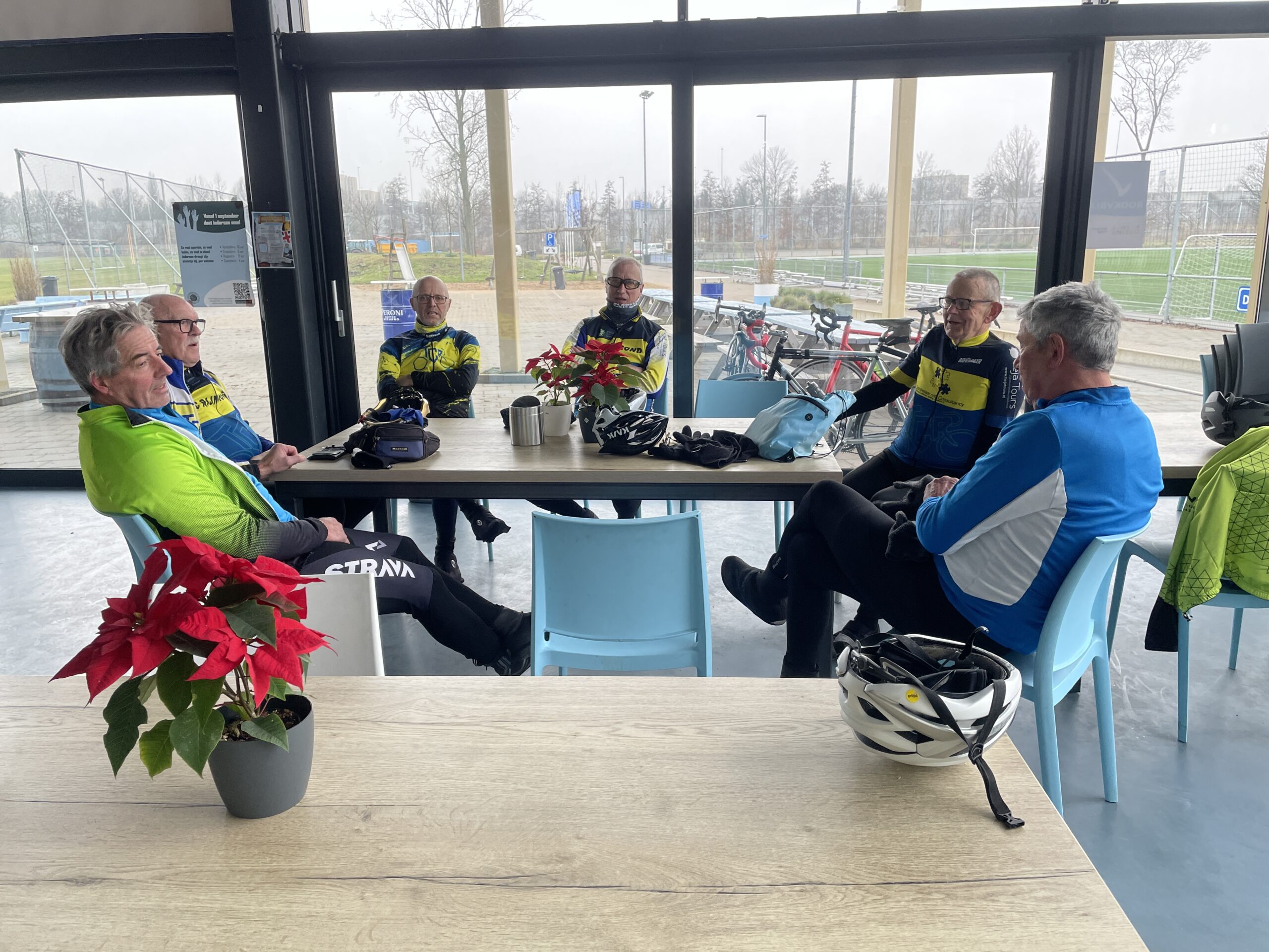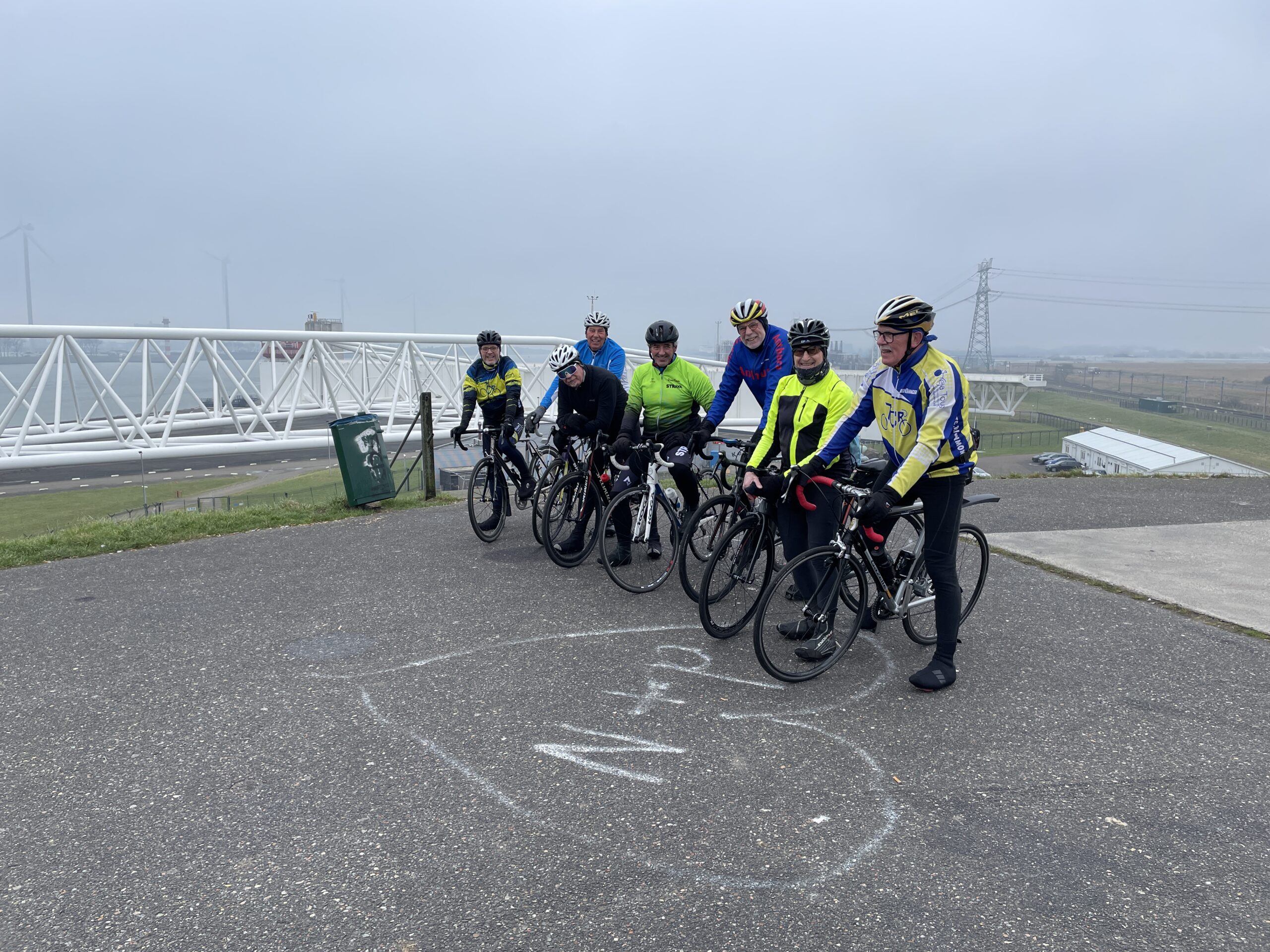 Het is alweer dinsdag en dat betekend fietsen door de pensionado’s van TC Rijnmond. Na buienradar te hebben bestudeerd, en naar buiten kijkend, zie ik droge paden de temperatuur valt wat tegen 4 graden. Maar er kan gefietst worden. Na alle rituelen voorbereidingen, ga ik op pad naar Hermes ons club onderkomen. Bij aankomst zie ik al wat fietsen staan en de route was ook al beslist we gaan voorlopig richting Hoek van Holland. We starten met 9 man: RobH, BertdM, BertS, PeterV, OlafdH, GerritvdH, MarcelR, RonvdH en ik haak ook weer aan. We rijden standaard naar Vlaardingen Oost verder op een weg op breking, ik volg Gerrit boven langs en zijn de rest kwijt voor ons rijdt een dame en Gerrit maakt een praatje en het blijkt Joke te zijn de vrouw van Tinus, die flink doortrapt. Wij wachten op de rest van het peloton. Even later brokkelt het peloton, maar eenmaal bij de Maeslandkering zijn we weer aardig compleet. Boven wordt volgens traditie een fotootje gemaakt. Na de afdaling zijn we al gauw bij het strand van Hoek van Holland er blijkt een hoop gekraak ui t de body van Marcel zijn fiets te komen, het waren dus niet zijn knieën gelukkig! We rijden rustig door de duinen naar Kijkduin voor een bakkie bij wie anders dan Loesje, daar wordt alles even gesmeerd met W40 en de band van Olaf blijkt ook lek te zijn en die wordt door onze eigen fietsenmaker BerdM in no- time gerepareerd. Binnen is het behaaglijk en heel gezellig. En BertS blijkt jarig te zijn geweest en heeft alles afgerekend, nog bedankt Bert! Voor de terug weg besluiten we BerdM zoveel mogelijk richting Maassluis te vergezellen. De kop is al divers keren gewisseld maar nu onder leiding van de extra lusje man Gerrit gaat zigzaggend naar Maasland en de Broekpolder naar Vlaardingen en eenieder zoekt zijn eigen weg huiswaarts. Iedereen bedankt voor de gezellig rit en de samenwerking! Grt. JanS