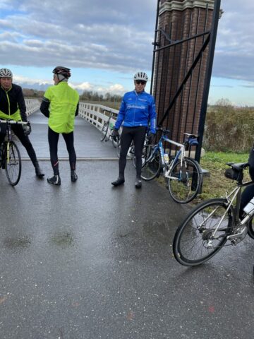 We vertrekken via Windas richting Kandelaarbrug, maar die blijkt afgesloten. Leo, op kop, navigeert ons creatief via Delft. Het komt goed: zigzaggend bereiken we Moerkapelle. Samen met Bert  doe ik kopwerk in een rustig tempo langs het begrazingsgebied van Bentwoud. Linksaf, meteen rechtsaf – het inmiddels vertrouwde extra lusje. Plots zijn we nog maar met vier; de rest heeft afgesneden.