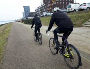 Vanmorgen vroeg kwam de eerste afmelding al binnen, JanS liet weten dat hij, met de aangekondigde code geel van het KNMI, het niet aandurfde. Begrijpelijk, want met regen op komst rond het middaguur, een stevige oostenwind kracht 4 en een gevoelstemperatuur van -6º is het niet bepaald weer om fluitend op de fiets te stappen. Maar goed, een klein rondje zonder koffiestop en op tijd thuis voor de regen klonk Gerrit als muziek in de oren. Eerst even langs de club om te kijken of er nog een DiDo-held was die het avontuur aandurfde. En jawel hoor, daar stond RonvdH al op ons te wachten.We spreken af voor een kort rondje, bijvoorbeeld de openingsrit van TCR. Starten met de wind in onze rug richting ’t Scheur, langs de waterweg en slaan af bij de Engelandvaardersviaduct. Vanaf dat punt begon het echte werk, een frisse, dwarse wind die later recht in ons gezicht zou blazen. Maar ach, we zijn wel wat gewend. We trapten dapper door, al stuurde ons gevoel ons nét voor “de Snelbinder” even de verkeerde kant op. Gelukkig greep de wegkapitein kordaat in en zaten we zo weer op het juiste spoor. We rijden achter de Lier om naar de “Wollebrand” , gevolgd door Wateringen en langs de Manege Chardon, waar ook de paarden besloten hadden om binnen te blijven. Gezien de tijd konden we nog een extra lusje inlassen, dus niet via Schipluiden maar door het Abtswoudebos naar de Schie. Net voor Schiedam slaan we af naar Vlaardingen Holy, hier nemen we het nieuw geasfalteerde Achterlangs pad om uiteindelijk op de van Hogendorplaan te belanden. We zijn nu bijna thuis waar de warme douche op ons wacht. Ron en Gerrit, bedankt voor de gezellige rit. En het mooiste van alles, we waren precies op tijd binnen voor de regen. Groet LeoS